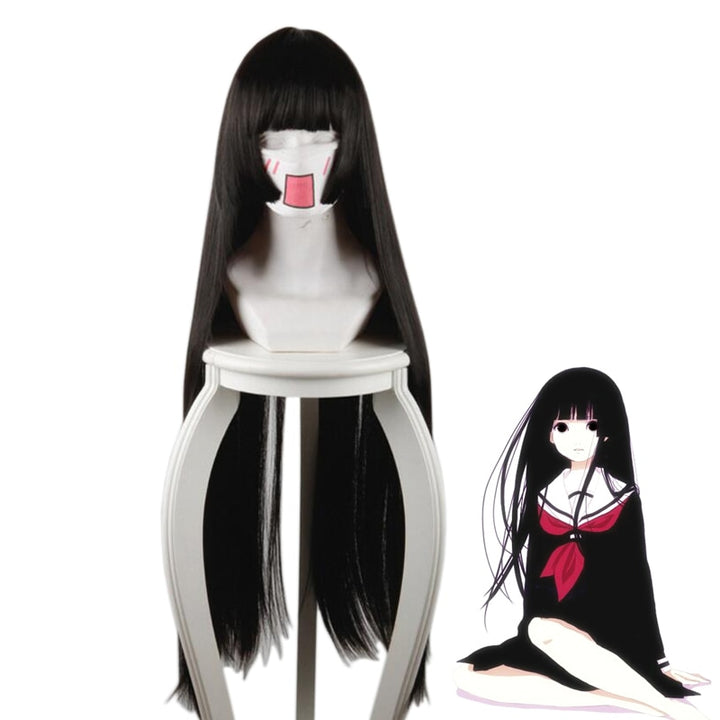 Anime Hells a Girl Enmama Ai Wig Cosplay Costume Jigokuku Shoujojo Mitsuganaeae Long Black Synthetic Hair Halloween Party Wigs