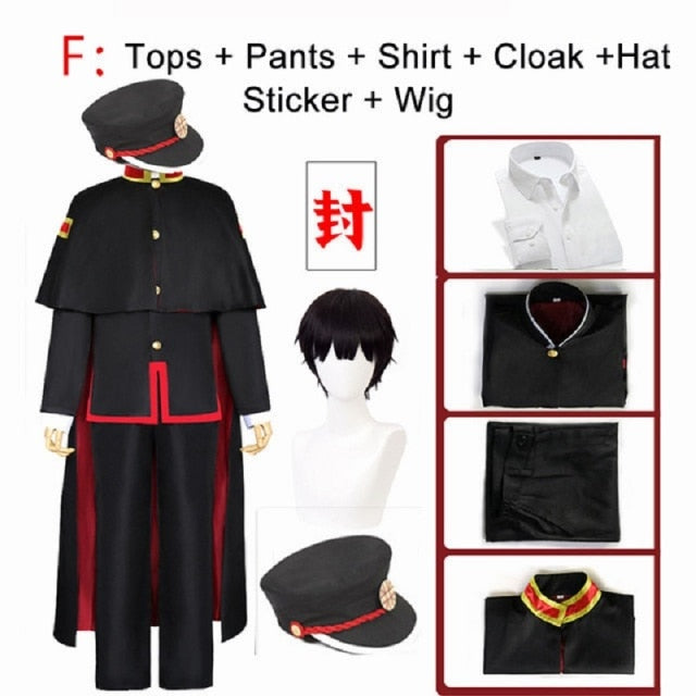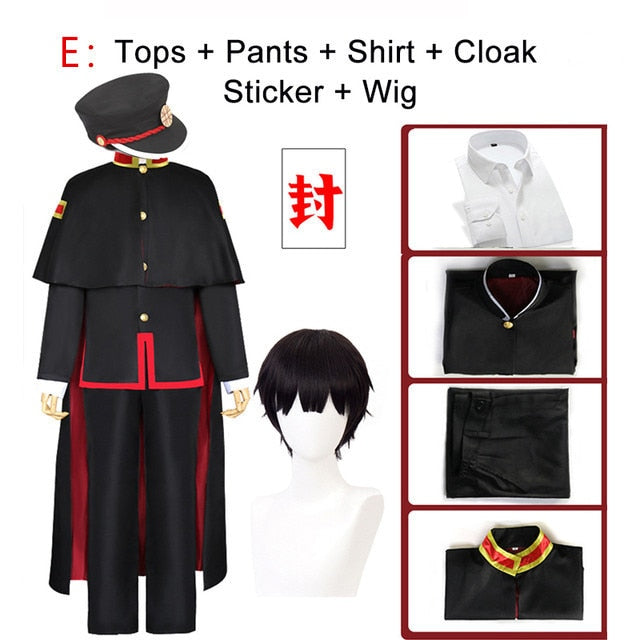 Anime Jibakuku Shounenen Hanakoko kun Yugigi Amanene Cosplay Costume Toilet oh bounds Hanakoko kun Cloak Black Full Set Uniform Wig Hat