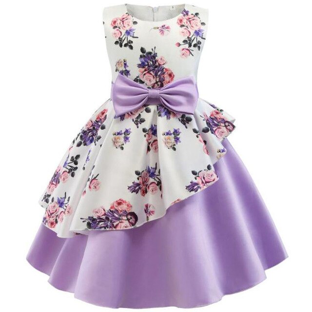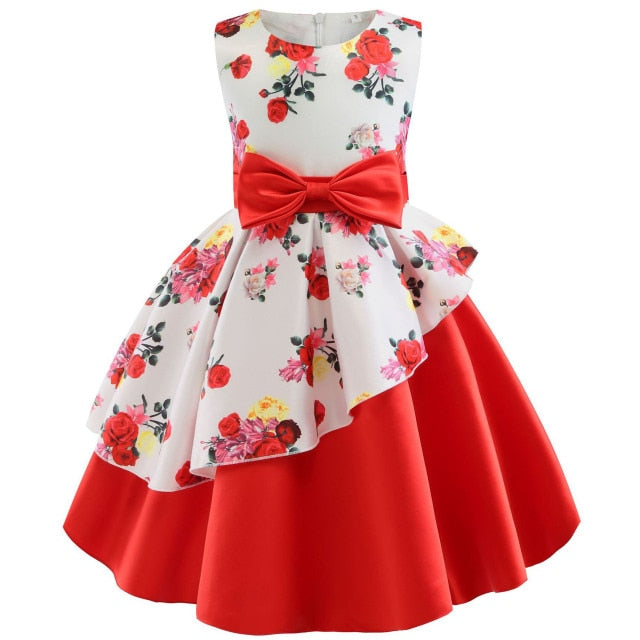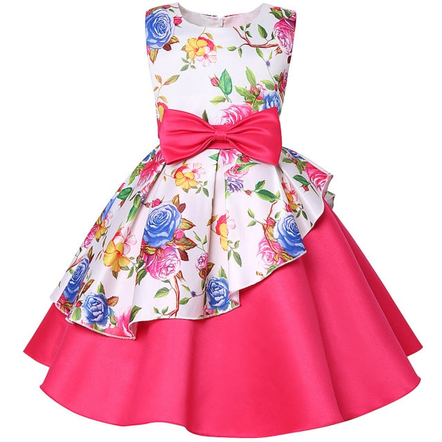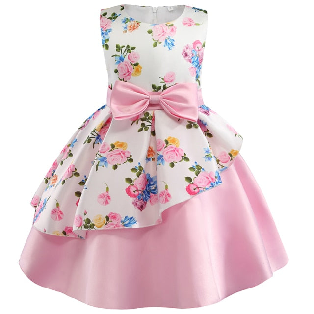 Baby Kids Flower Pretty Birthday Dresses Children Clothing Toddler Wedding Princess Dress Eveving Party Costume Clothes With Bow