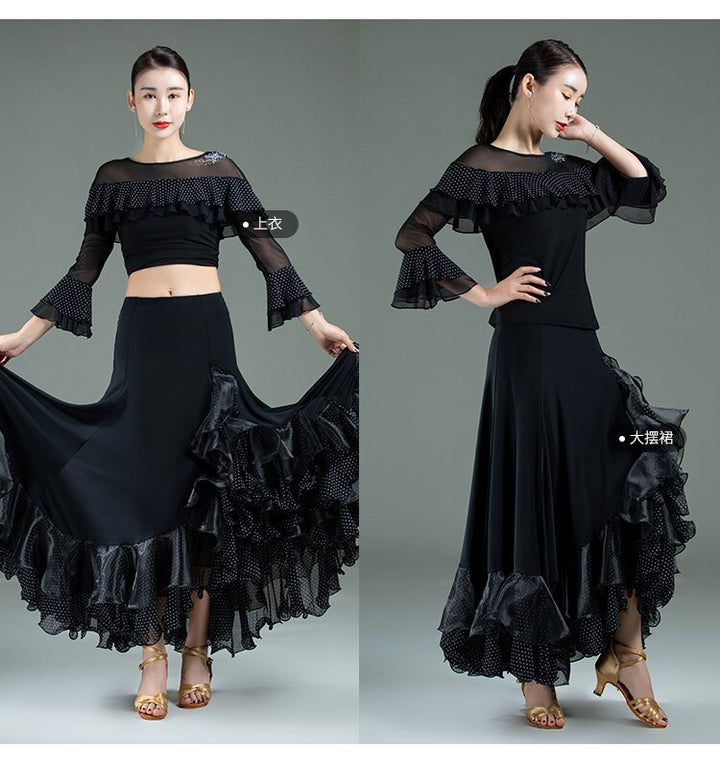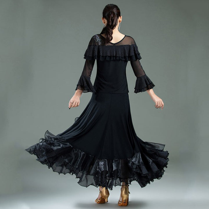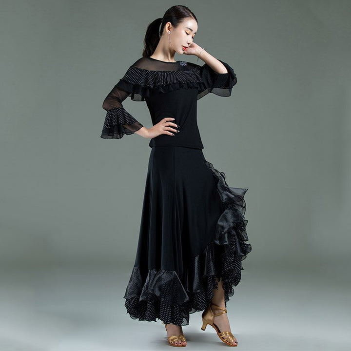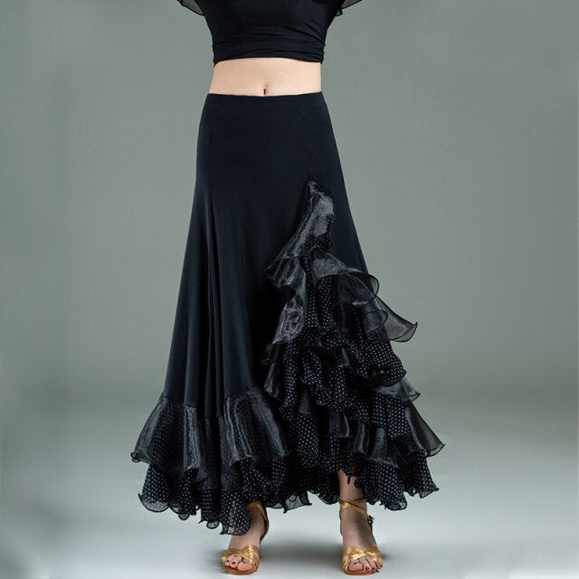 Black Ballroom Dance Skirt For Women Long Skirts Waltz Dance Wear Dancer Outfit Designer Clothes Performance Costume DL7184