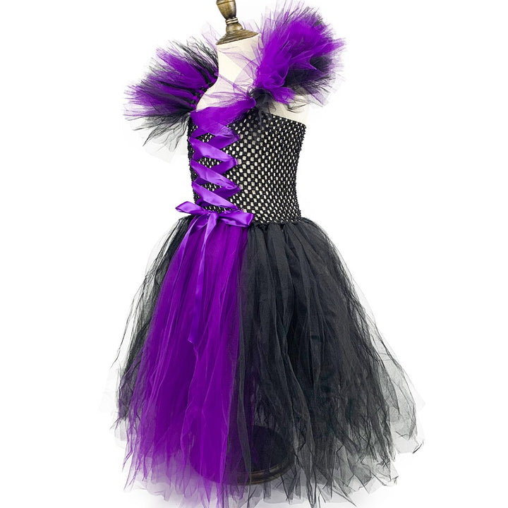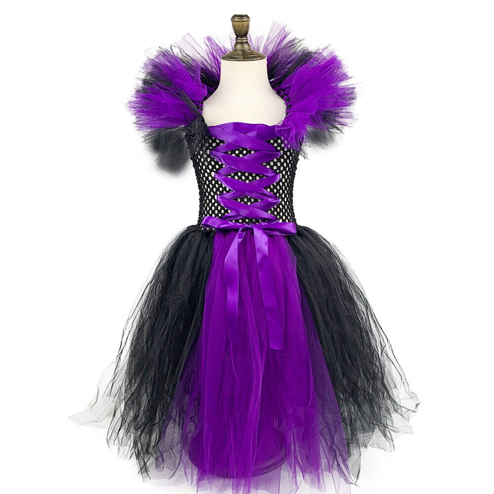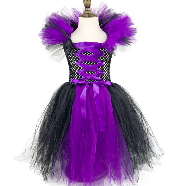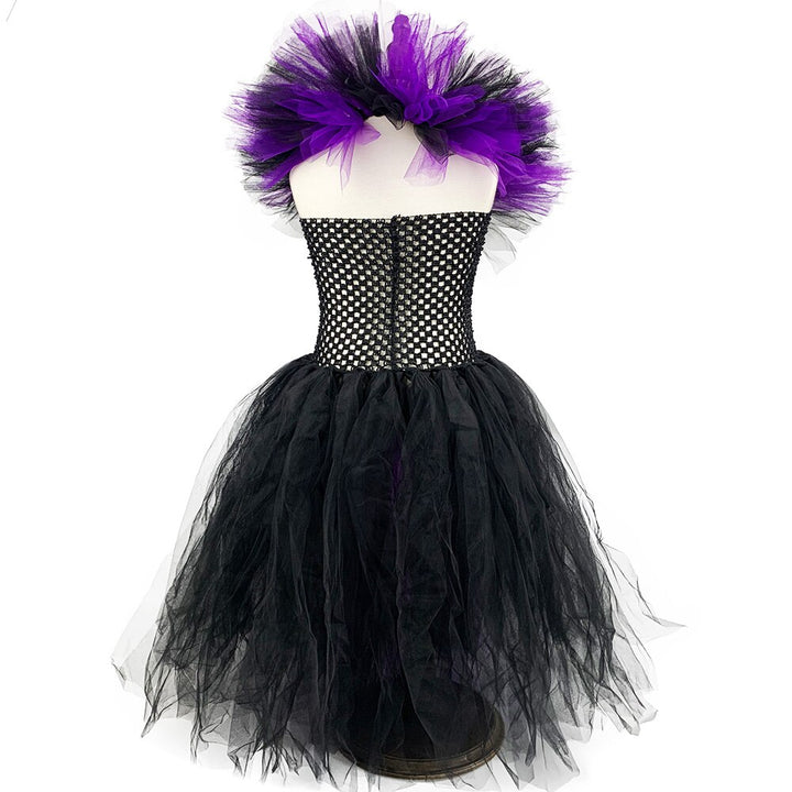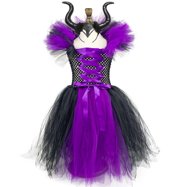 Black Purple Devil and Witch Costume Girls Party Dresses Long Kid Demon a Evil Cosplay Clothes with Horns Wings Child Carnival Gifts