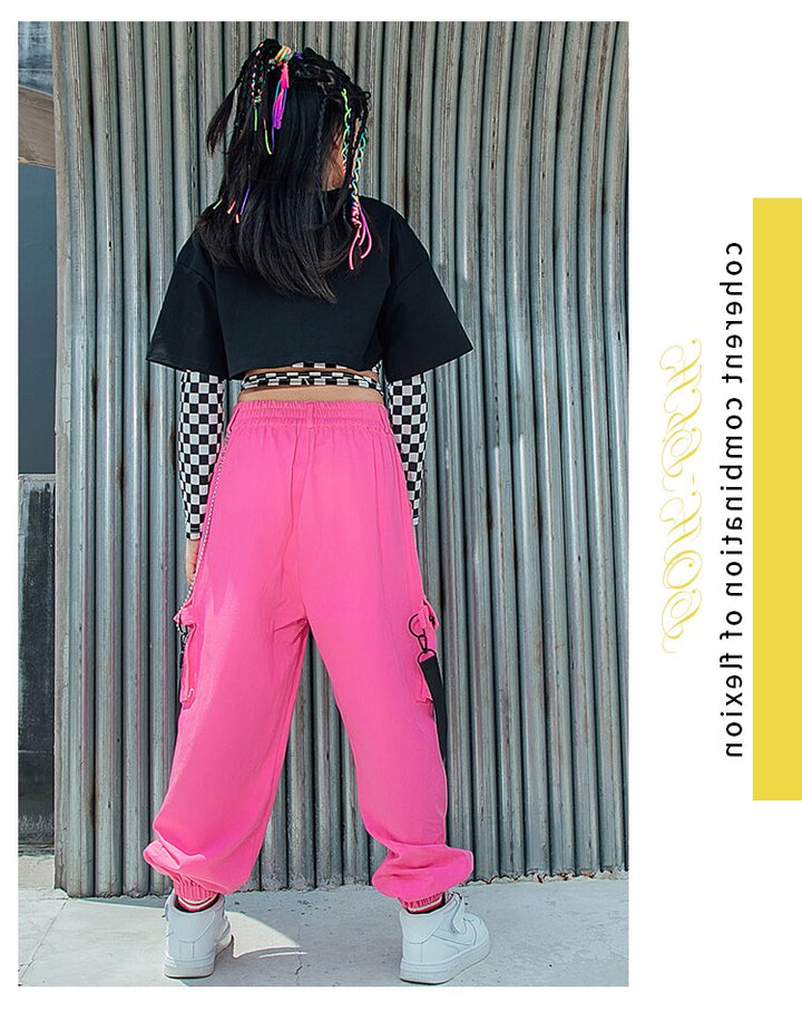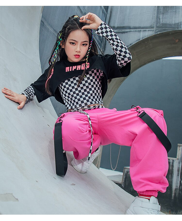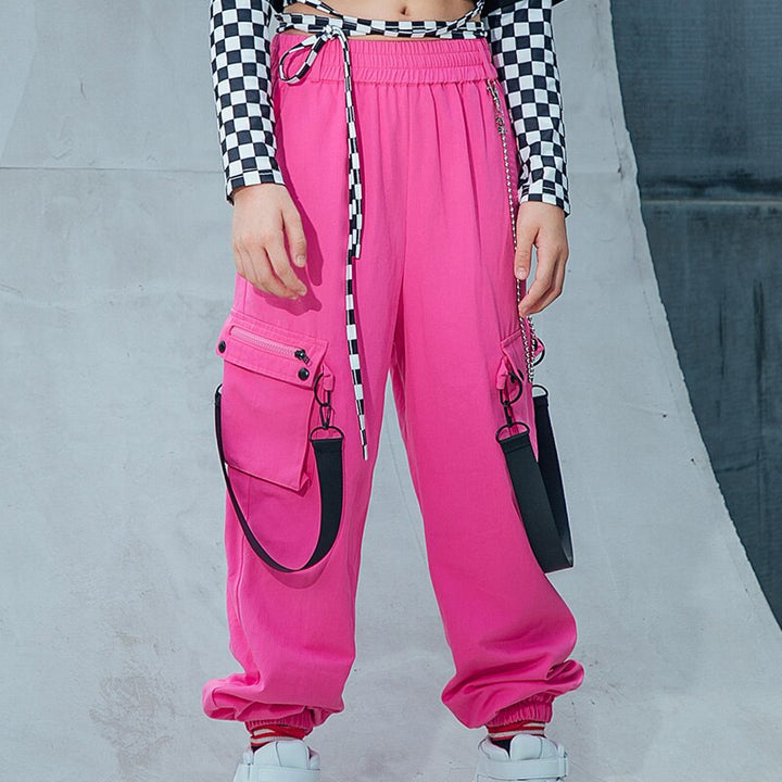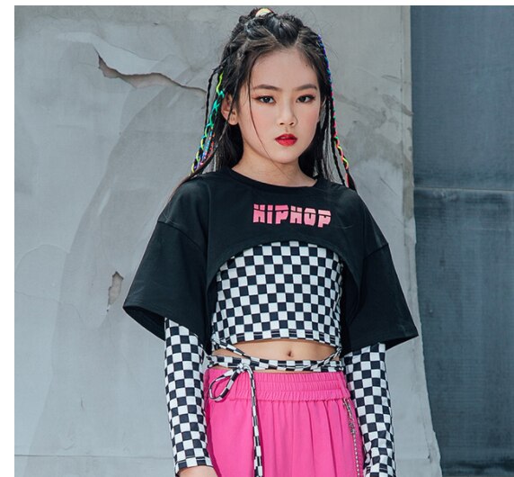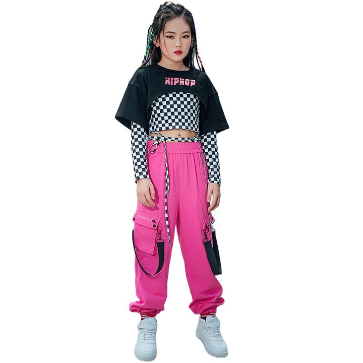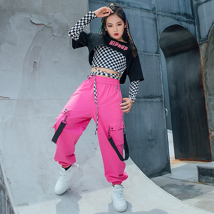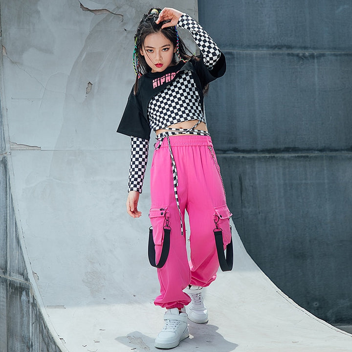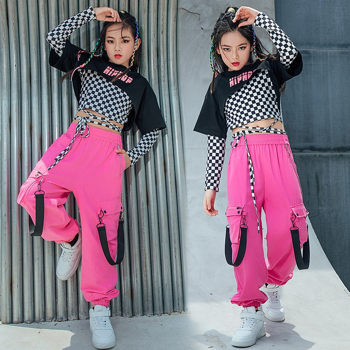 Children Hip Hop Dance Clothes Lattice Tops For Girls Casual Cargo Pants Jazz Performance Rave Wear Street Dance Costume