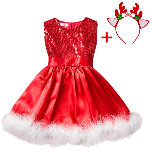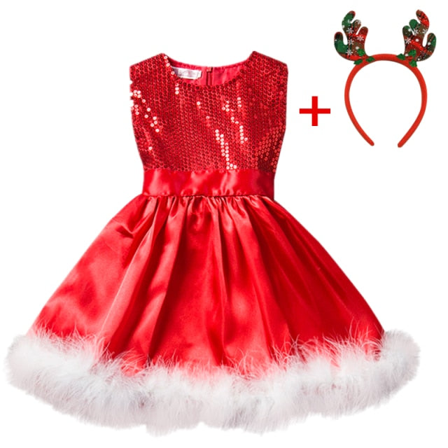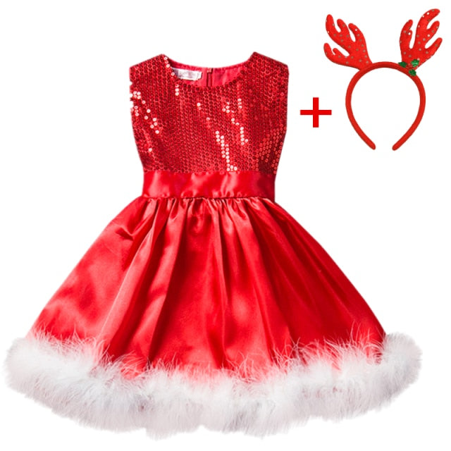 Christmas Girl Dress Sequins Princess Party Dress For Girls Wedding Vestidos Red Kids Clothes Children New Year Party Dresses