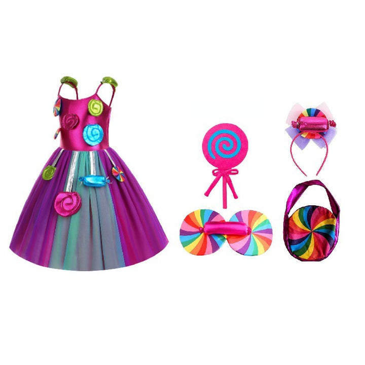 Costumes for Girls Cosplay Princess Candy Dress Costumes Sets Lollipop Party Clothing Rainbow Kids Birthday New Year Dress