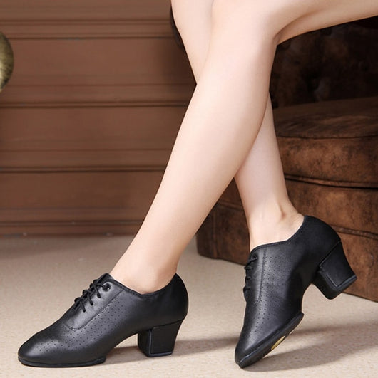 Cow Leather Middle Heel Women's Tango Flamenco Dance Shoes Teacher's Shoe Girls Waltz Tango Foxtrot Quick Step Dance Shoes