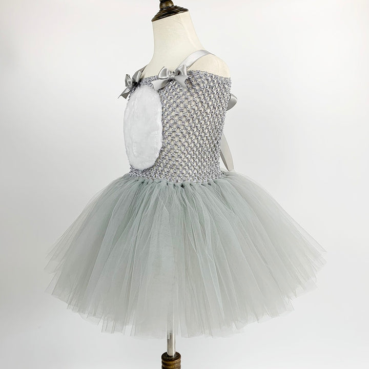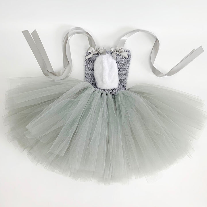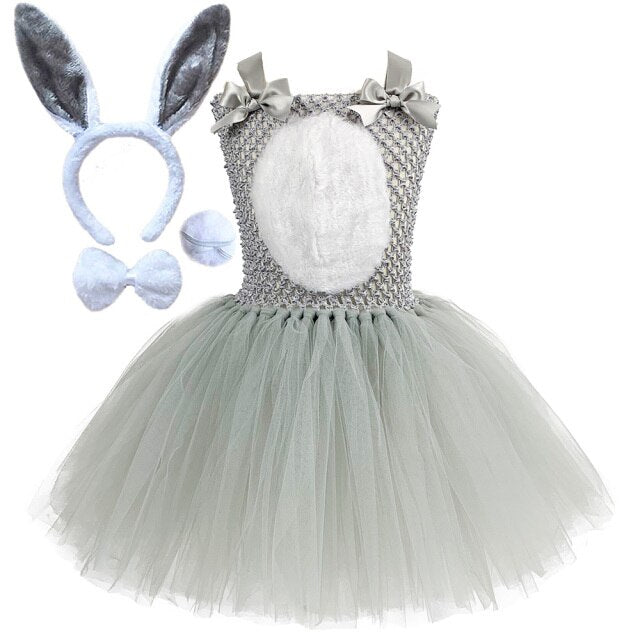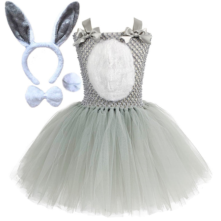 Cute Rabbit Dress Girls Kids Gray Bunny Cosplay Costume Toddler Girls Easter Halloween Fancy Dress Child Birthday Clothes Outfit