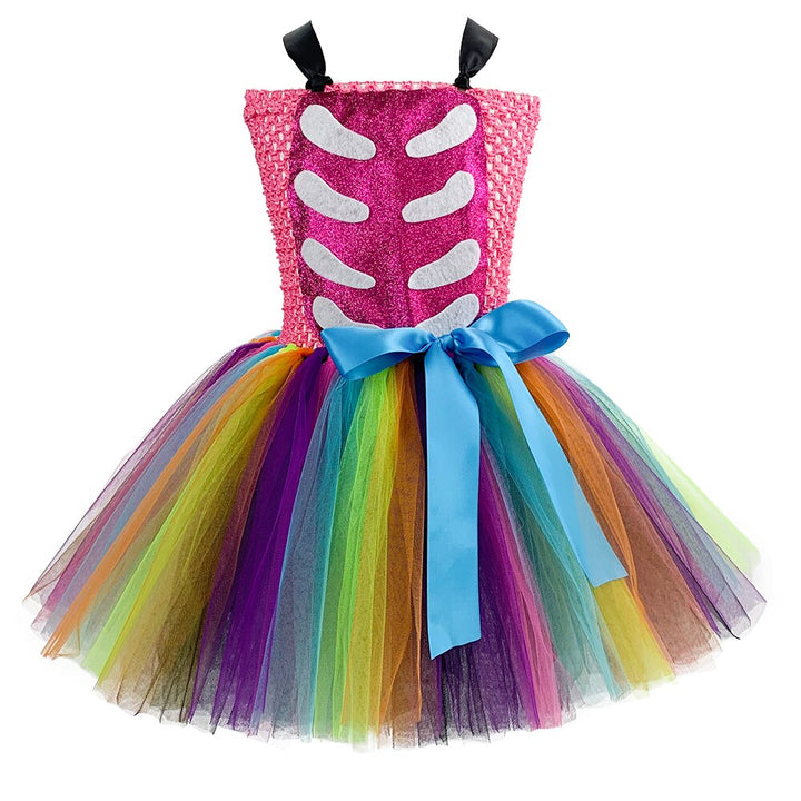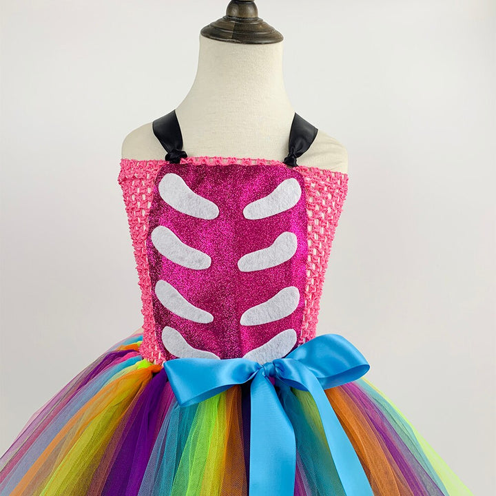 Day of oh the Dead and Girl Skeleton Fancy Dresses Kids Halloween Cosplay Costume Baby Girls Funky Punk Bones Tutu Dress Birthday Purim