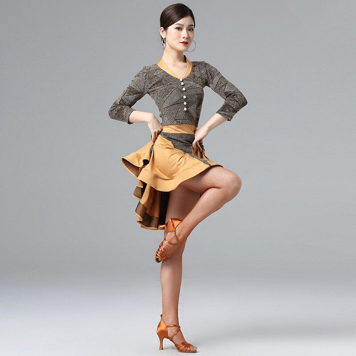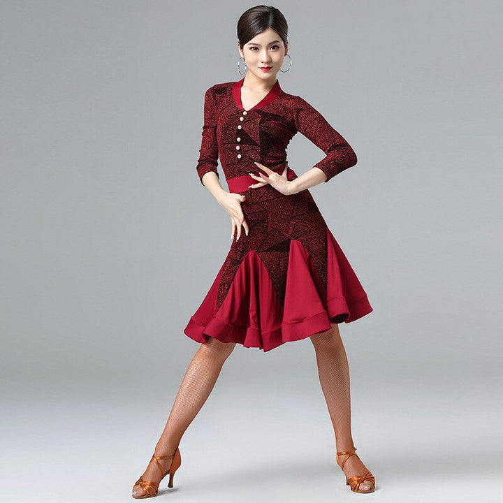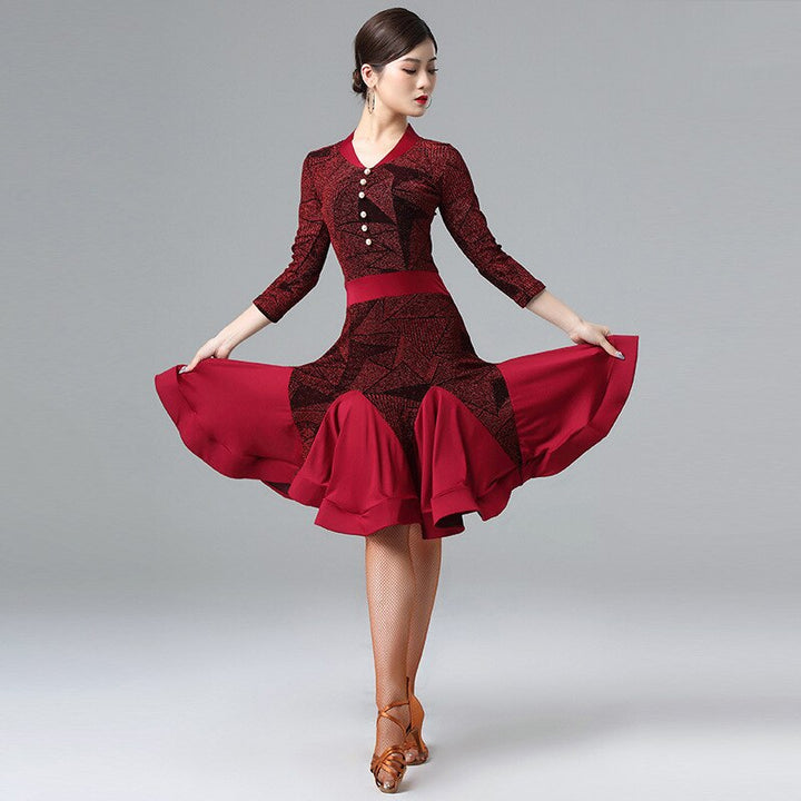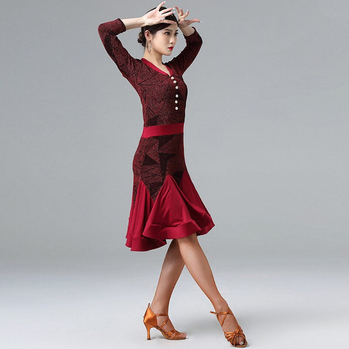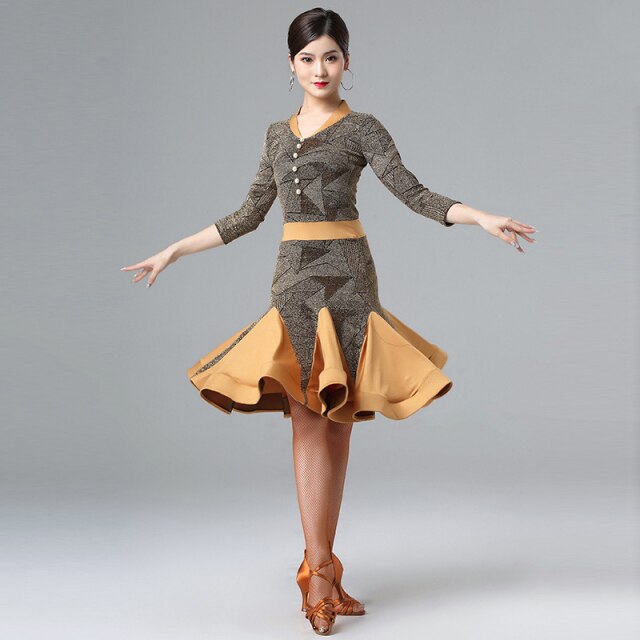 Fall Latin Dance Dress For Women Salsa Dance Outfits Stage Costume Ballroom Practcie Wear Samba Dancewear Designer Dress DL7497