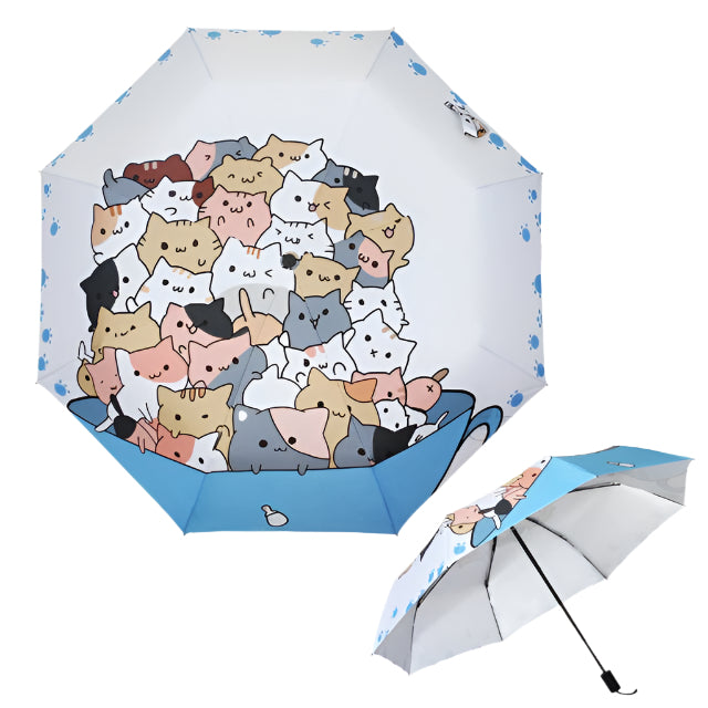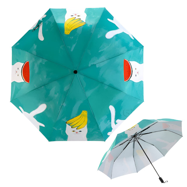 Cartoon Cats Rain Sun Umbrella 3 Folding 8 Rib Sunshade Women Umbrellas