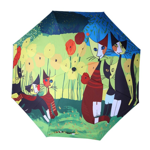 Fashion Art Illustration Cartoon Cats Umbrellas Rain Sun Umbrella 3 Folding Thickening 8 Rib Creative Sunshade Women Umbrellas