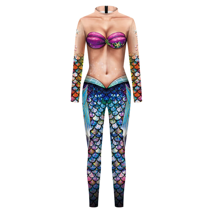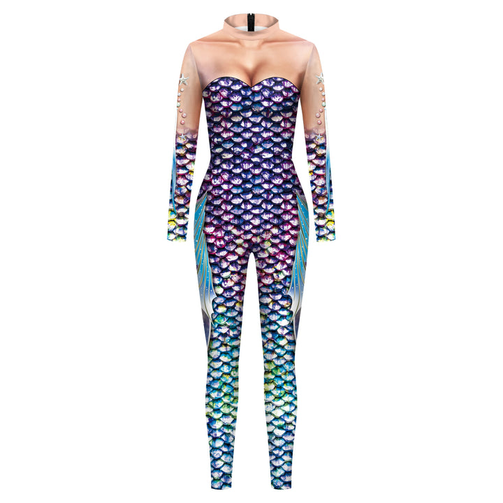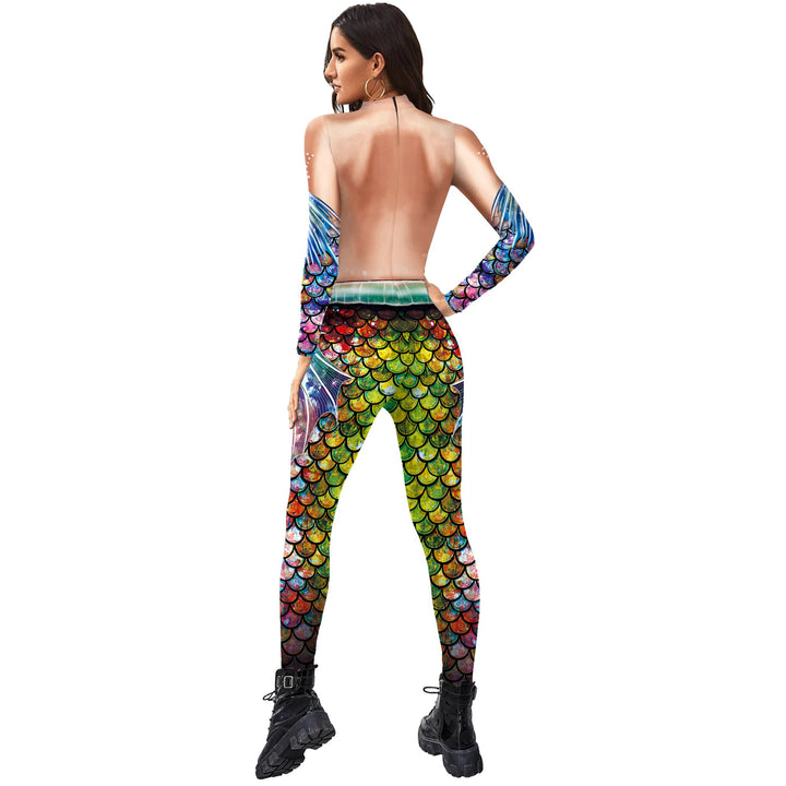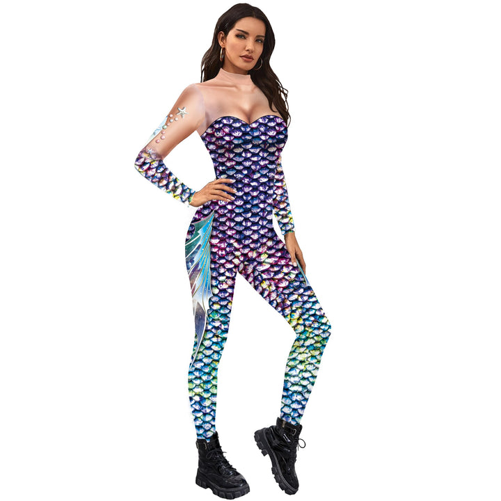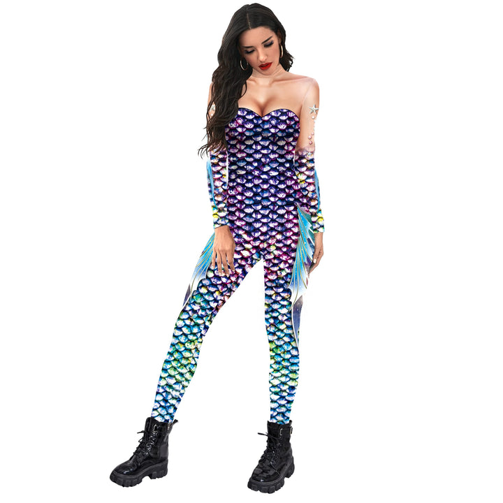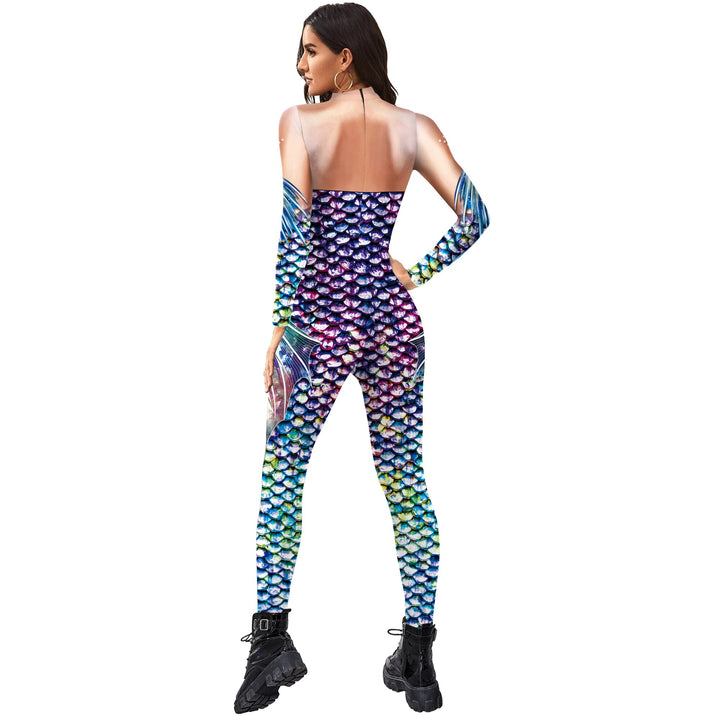Fish Scale Digital Printing Holiday Party Cos Mermaid Bodysuit Women Jumpsuit Stretch Casual Wear Cosplay Costume Jumpsuit