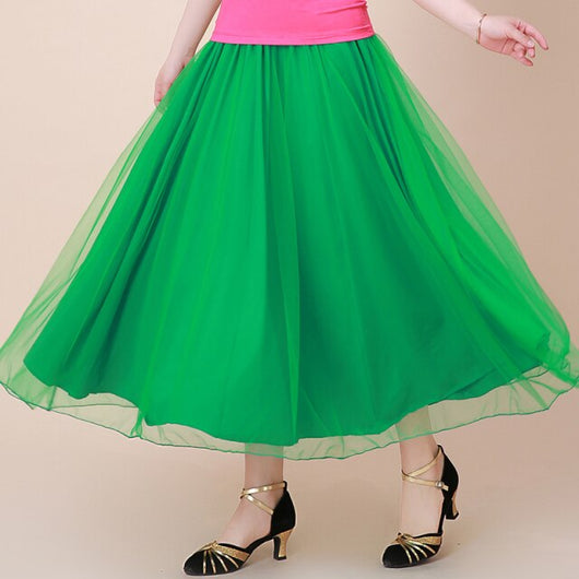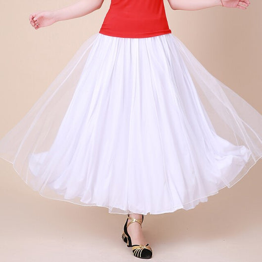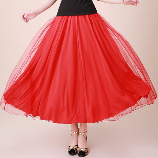 Flamenco Skirt Women Mesh Long Skirt Ballroom Dance Costume Spanish Bullfight Dress Stage Costume Opening Dance Clothing DL7381
