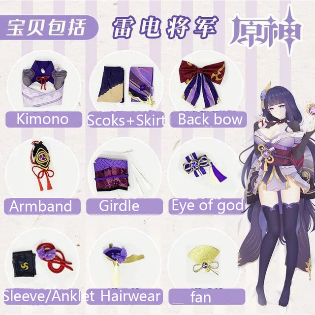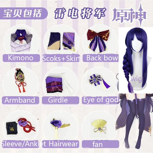 Game Genshing and Impacts Raidenen Shogunun Cosplay Costume Baalal Wig Shoes Cosplay Costume Sexy Women Kimono Dress Uniform Party RolePlay