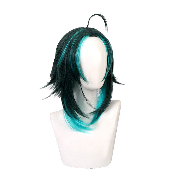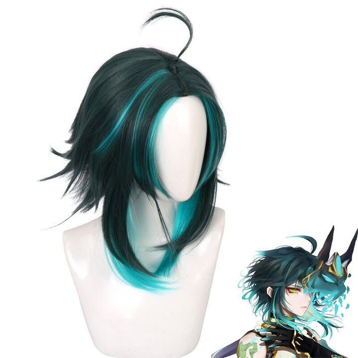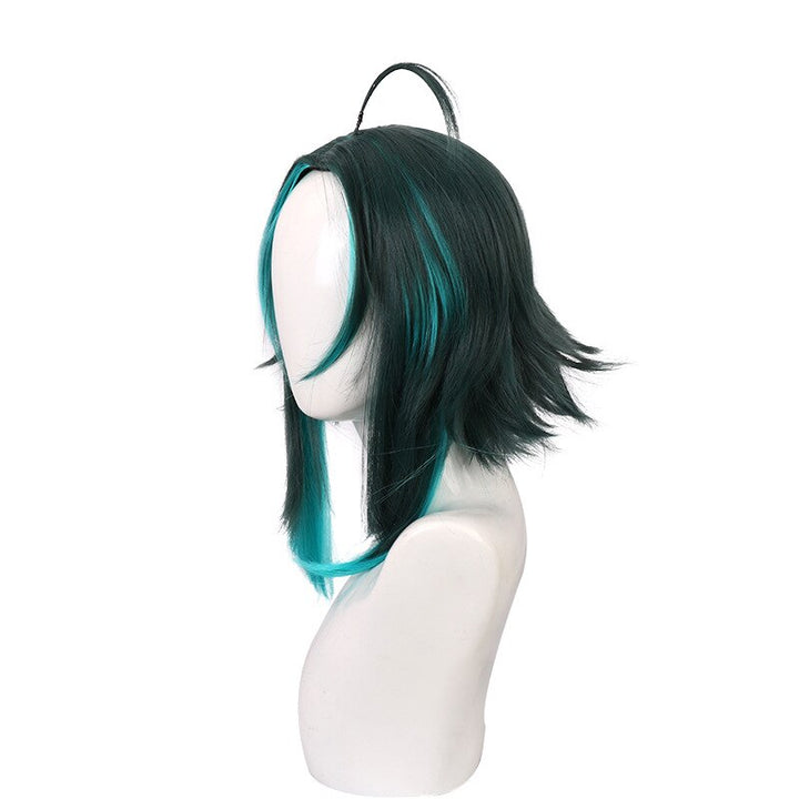 Game Genshing and Impact Xiao Dark Green Short Wig Cosplay Costume Heat Resistant Synthetic Hair Party Wigs