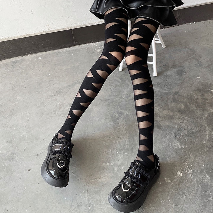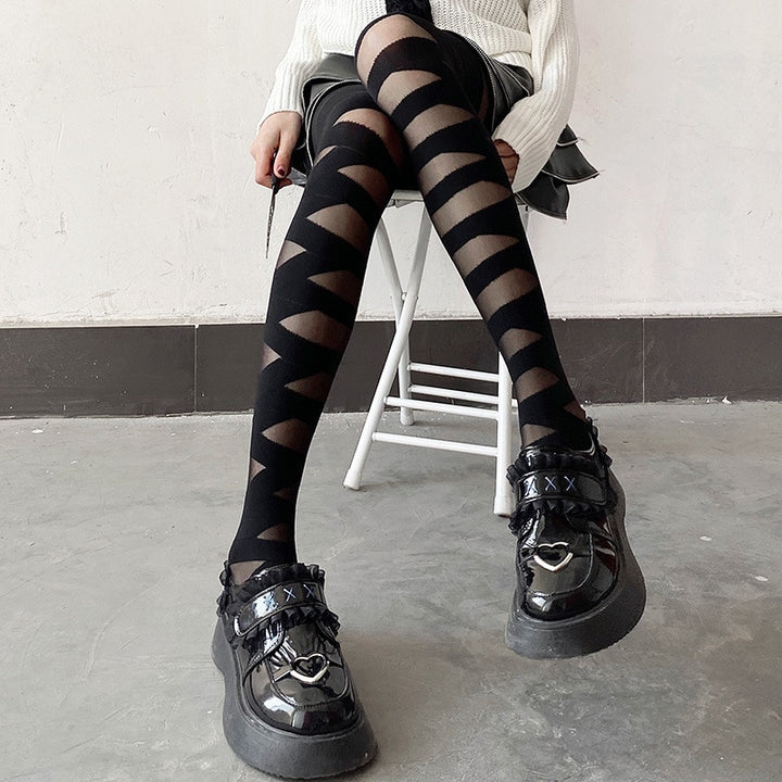 Girls Lolita Bandage Stockings Women Cosplay Costume Tights Pantyhose Hollow Thin Stripe Socks Accessories Gifts