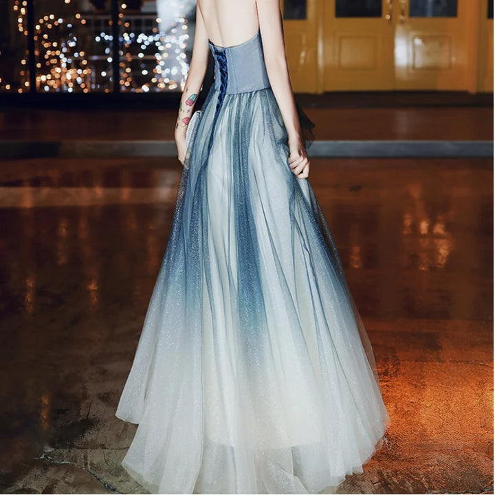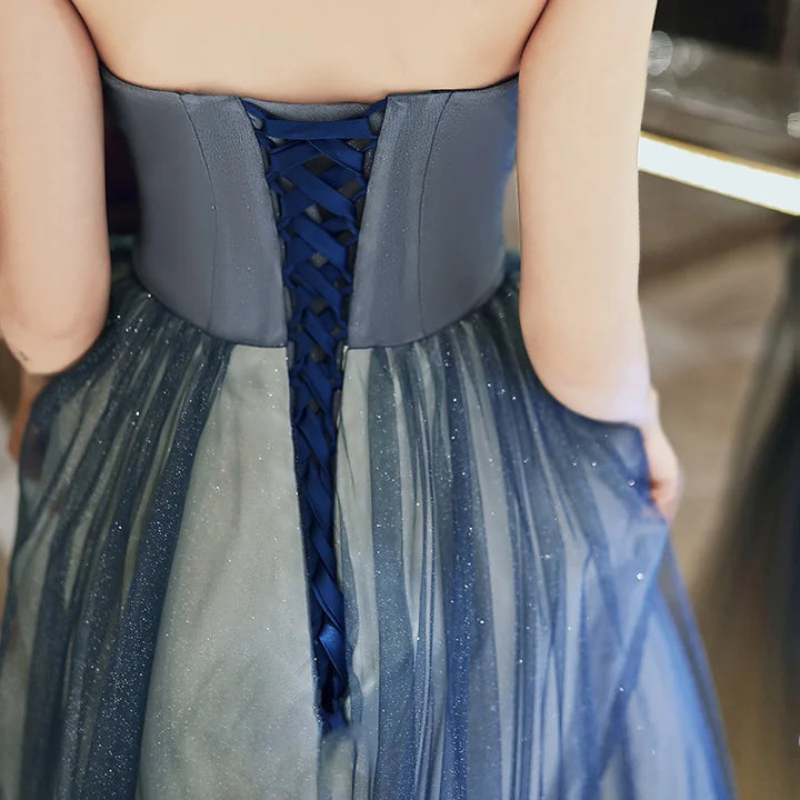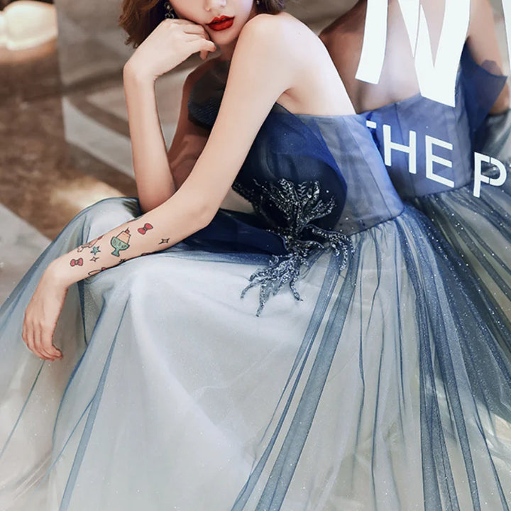 Gradient Evening Dress Women Summer New Appliques Temperament Slim Fairy Strapless Prom Robe Elegant Wedding Party Dresses