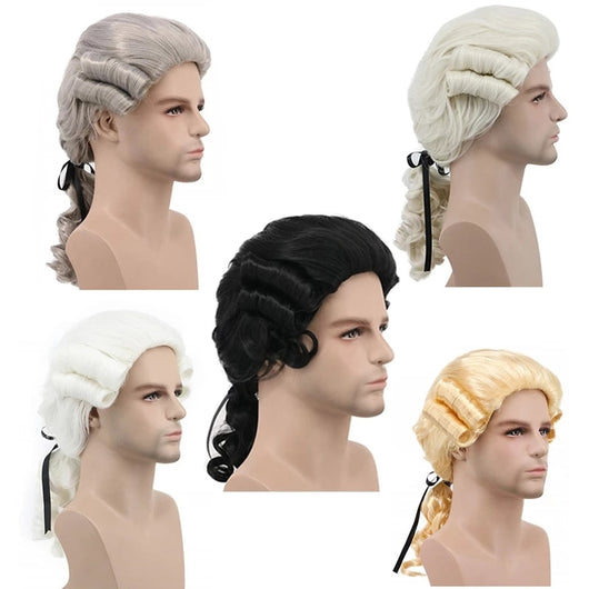 Grey White Black Lawyer and Judges Baroques Curly Male Costume Wigs Deluxe Historical Long Synthetic Cosplay Wig For Halloween