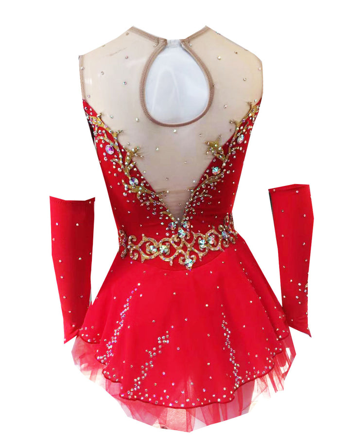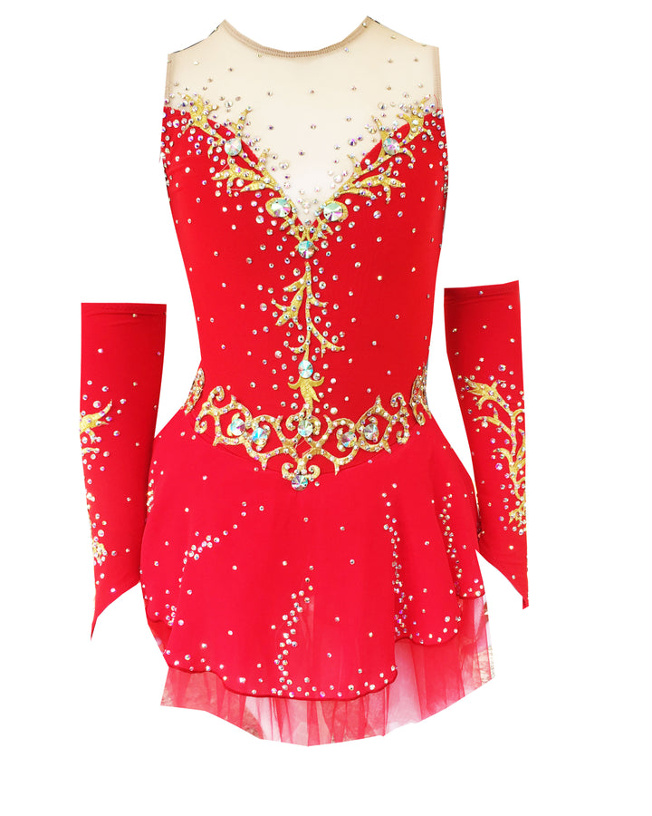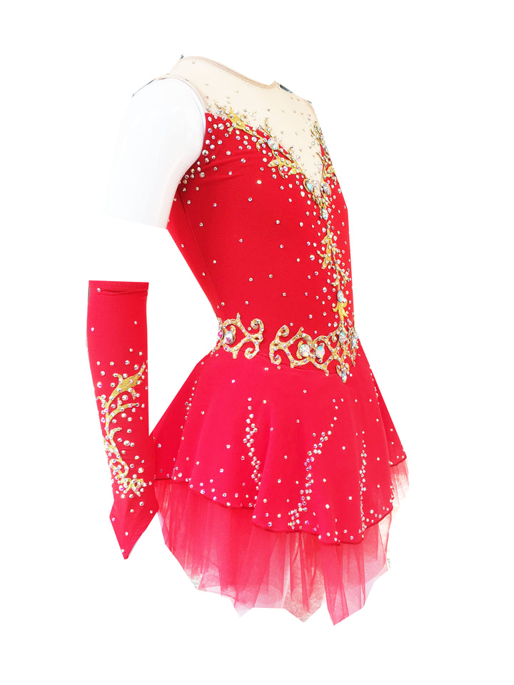 Gules Figure Skating Dress Long-Sleeved Ice Skating Skirt Spandex