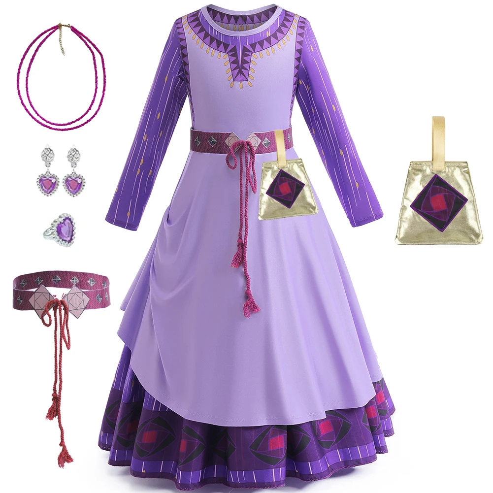 Halloween Cosplay Princess Wish Asha Dress for Girls Carnival Christmas Kids Masquerade Stage Performance Birthday Party Costume