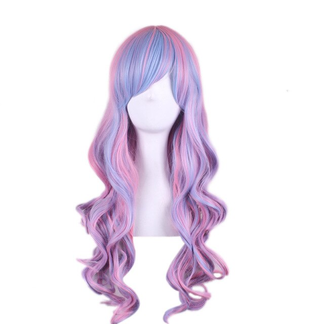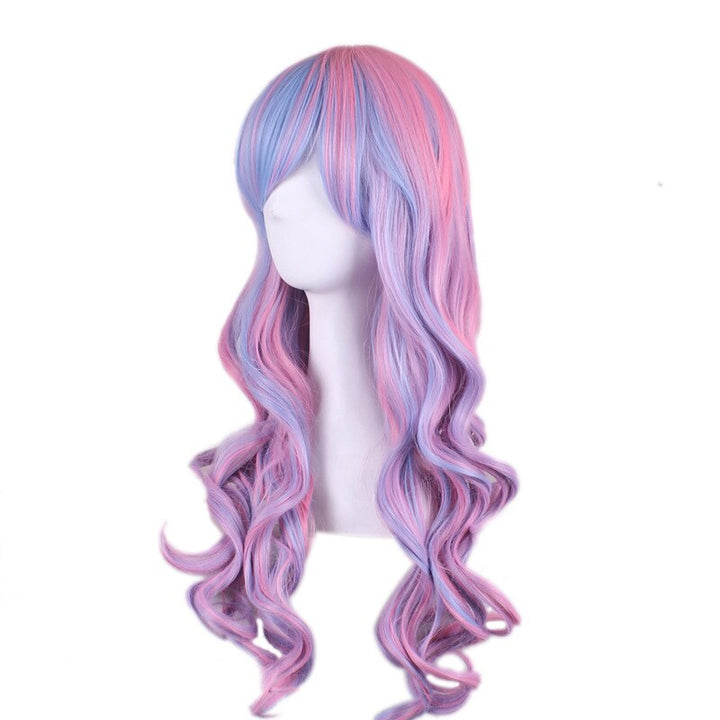 Hot Oblique Bangs Fluffy Gradient Color Cosplay Anime Wig for Women New Role Natural Synthetic Ladies Harajuku Long Curly Hair