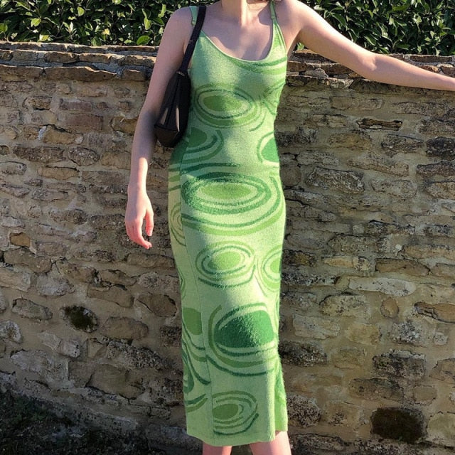 House Brand Off Shoulder Sunny Dress Spaghetti Strap Sexy Bodycon Summer Beachwear Paisley Y2K Hollow Out Knitted Women's Dress
