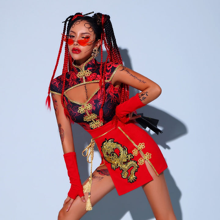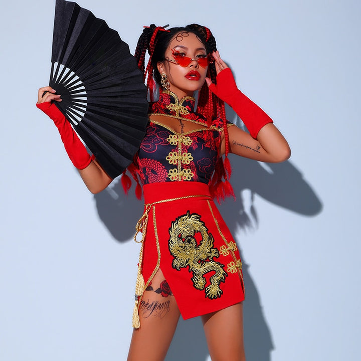 Jazz Dance Wear For Adult DJ DS Clothing Chinese Style Dancer Outfit Cheerleader Costume Designer Clothes Stage Costume DL7203