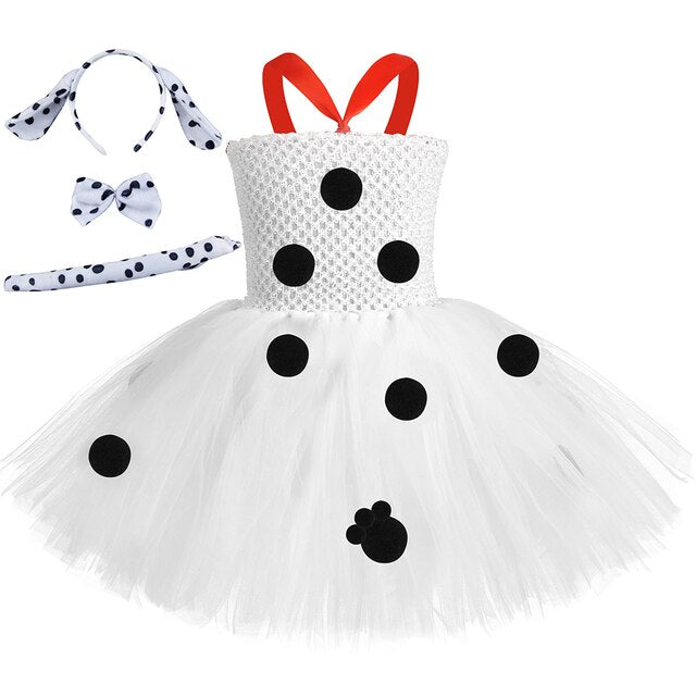 Kid White Polka Dot a Dog Costume Toddler Girls Birthday Party Dress Children Halloween Carnival Animal Cosplay Clothes Outftis