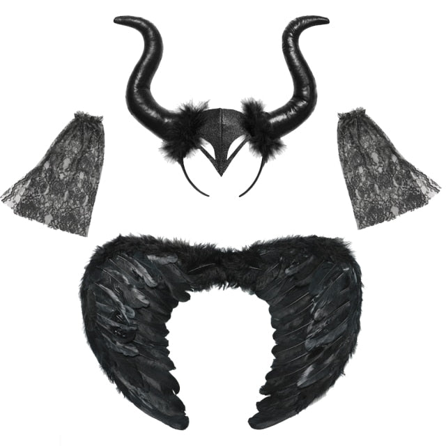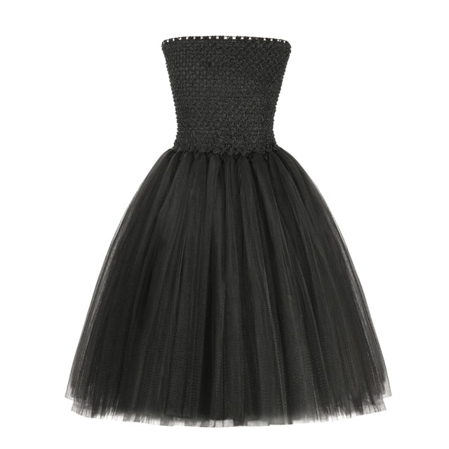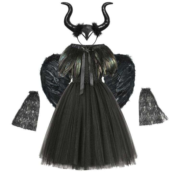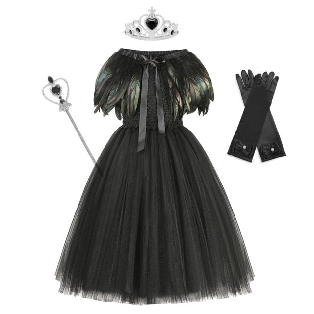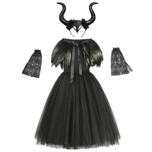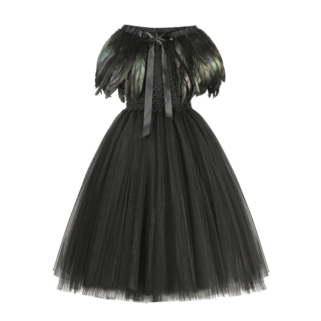 Kids Black Devil Tutu Costume Gothic Halloween Girls Fancy Tutu Dress with Feather Shawl Royal Dark Queen Males Ficent Gown Dress Kid Costume