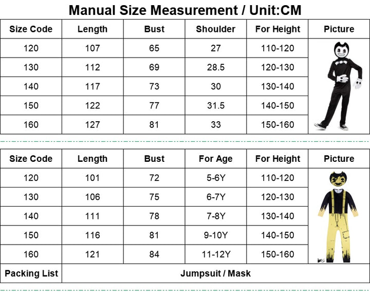 As all of our costume is hand-sewn, the finished costume may vary by approximately one (1-2) inch in either direction of the specified measurements.