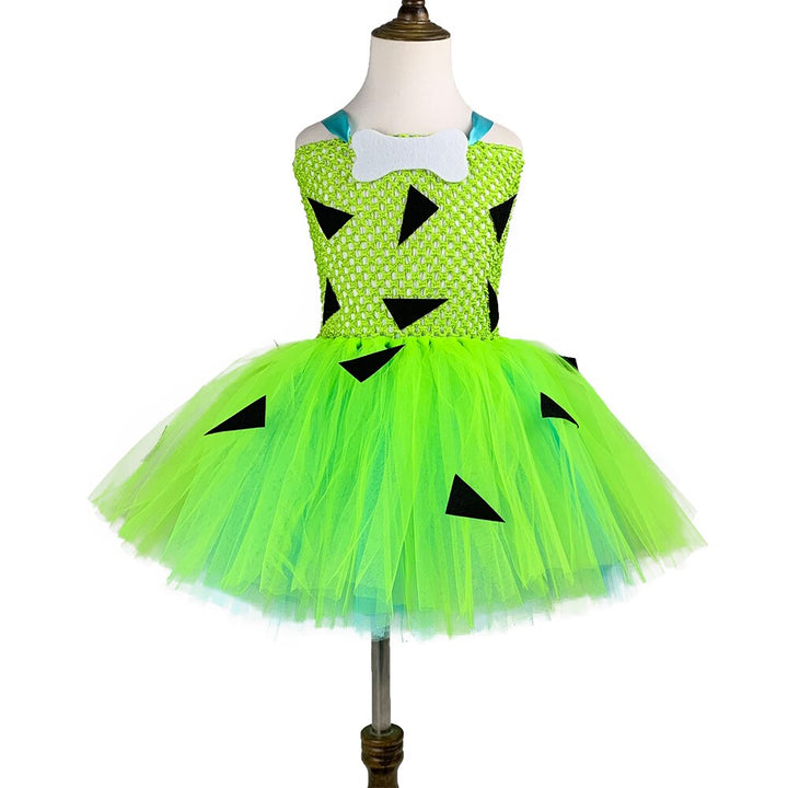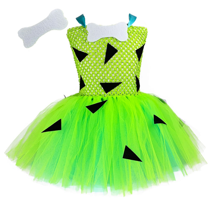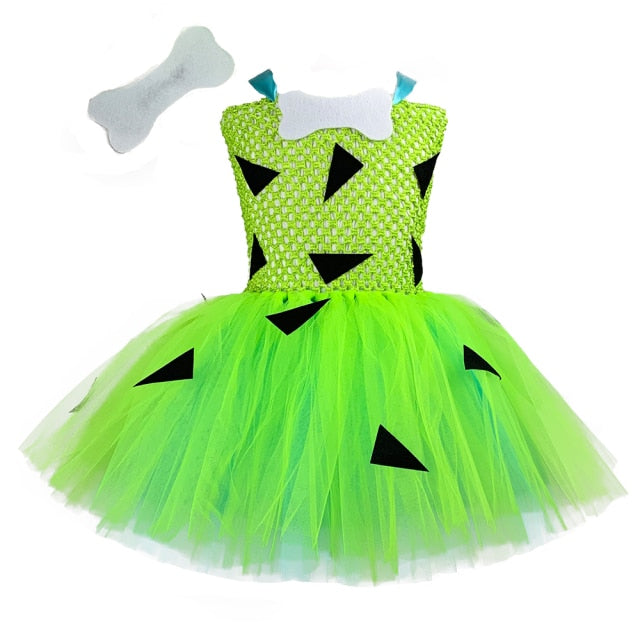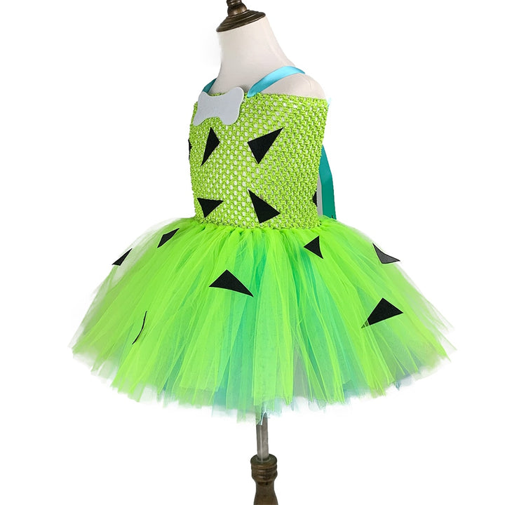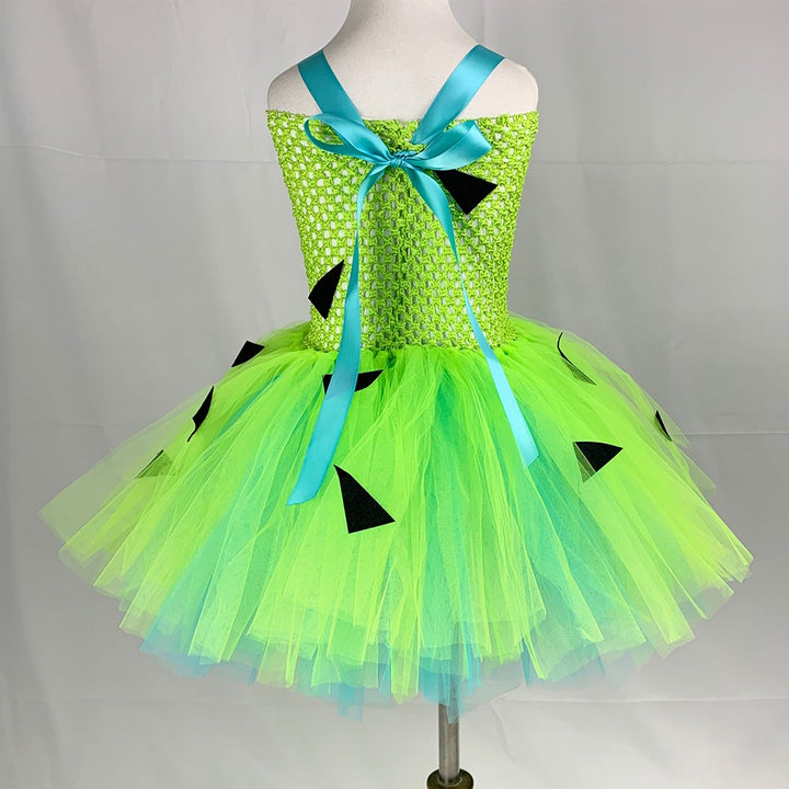 Kids Pebbleses Costume Baby Toddler Girls Light Green Blue Caveman Flinstone Tutu Dress 1-12y Child Halloween Party Clothes Set