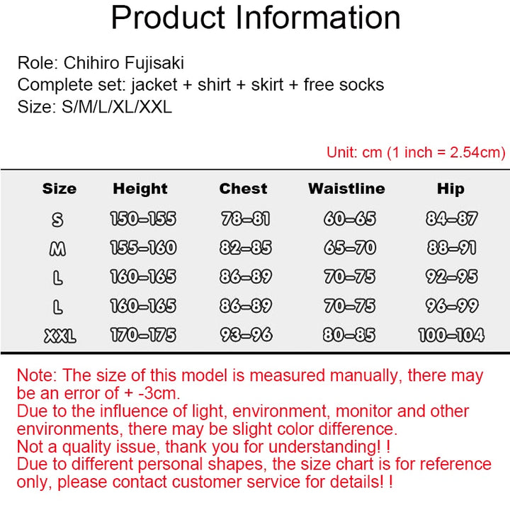As all of our costume is hand-sewn, the finished costume may vary by approximately one (1-2) inch in either direction of the specified measurements.