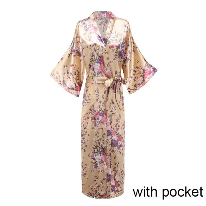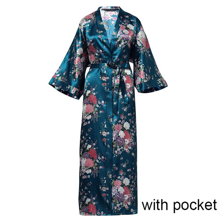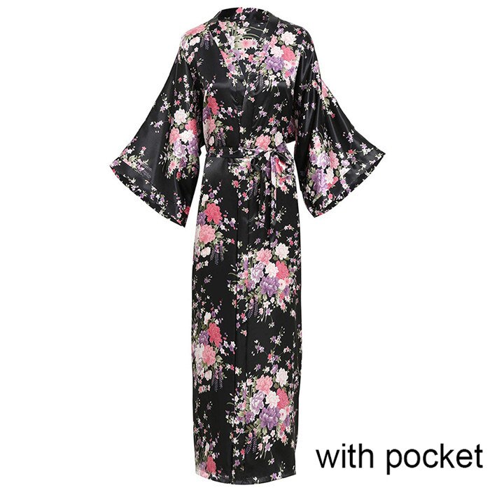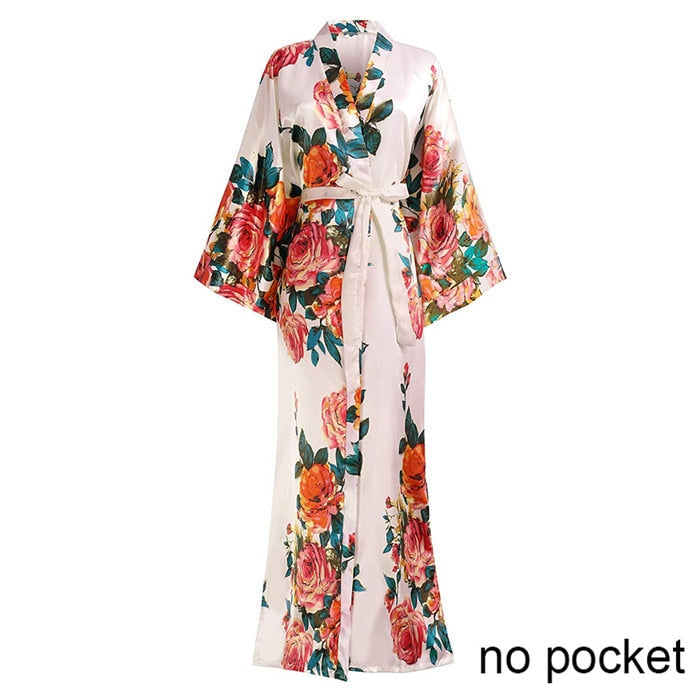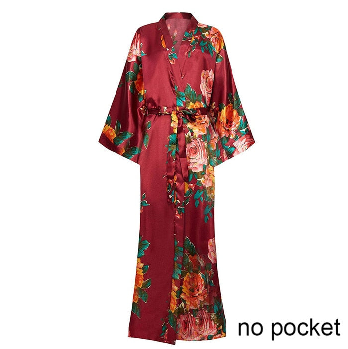 Large Size 3XL 4XL 5XL 6XL For Women Satin Spring Sleepwear Intimate Lingerie Print Flower Kimono Bathrobe Gown Home Clothing