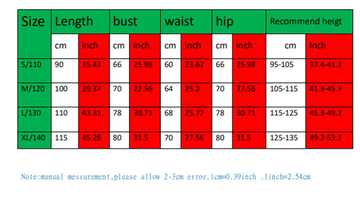 As all of our costume is hand-sewn, the finished costume may vary by approximately one (1-2) inch in either direction of the specified measurements.