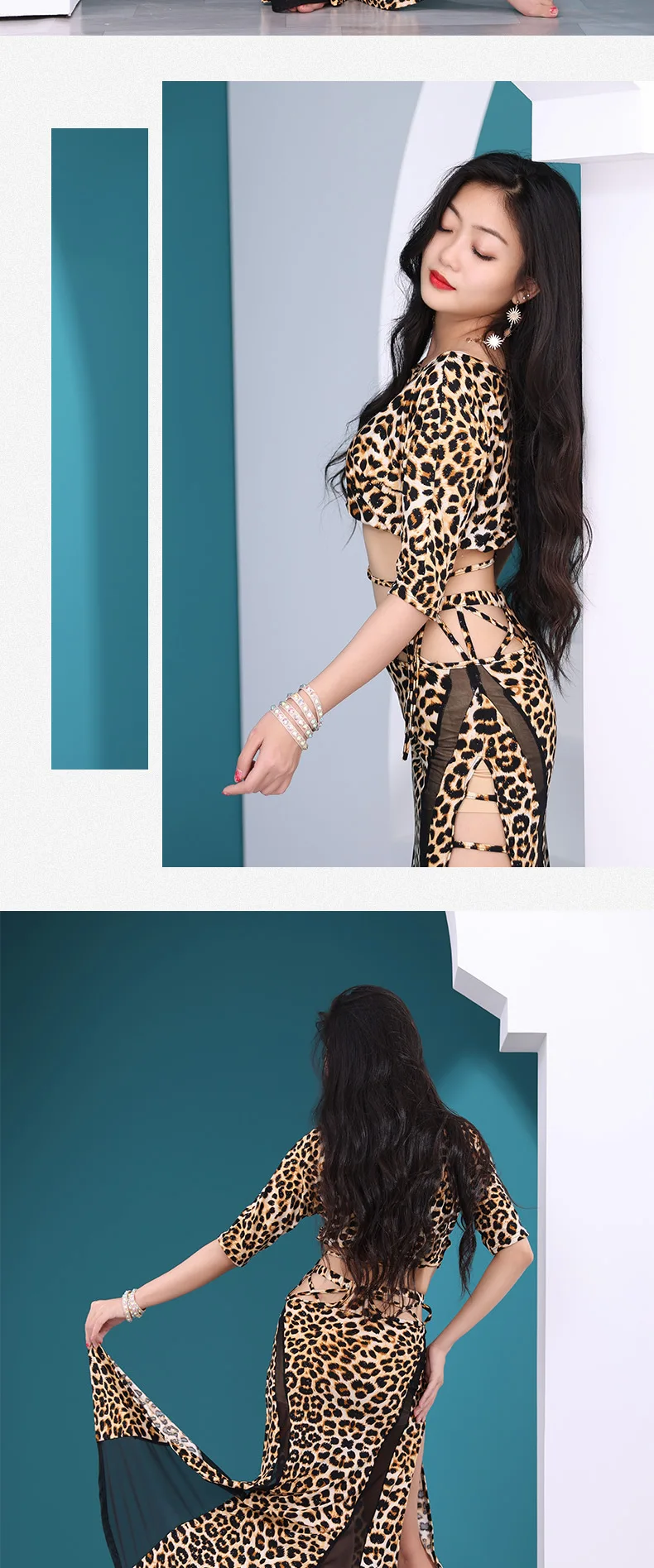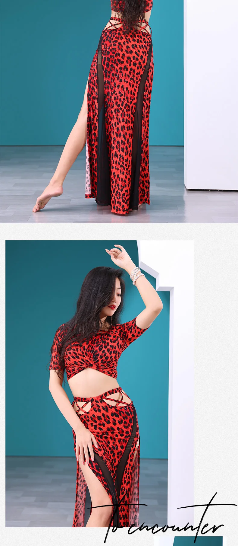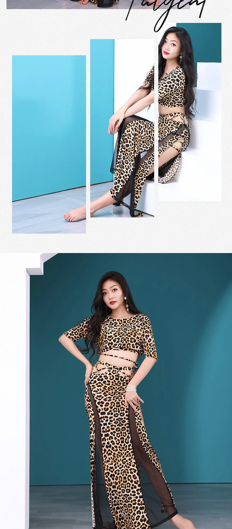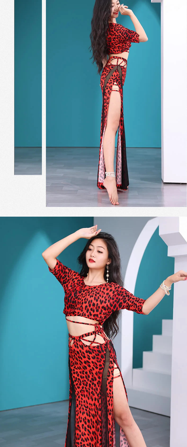 Leopard Printed Belly Dance Training Clothing Stretch Class Wear Bellydance Costume 2pcs Crop Top Long Skirt Sexy Mesh Outfit