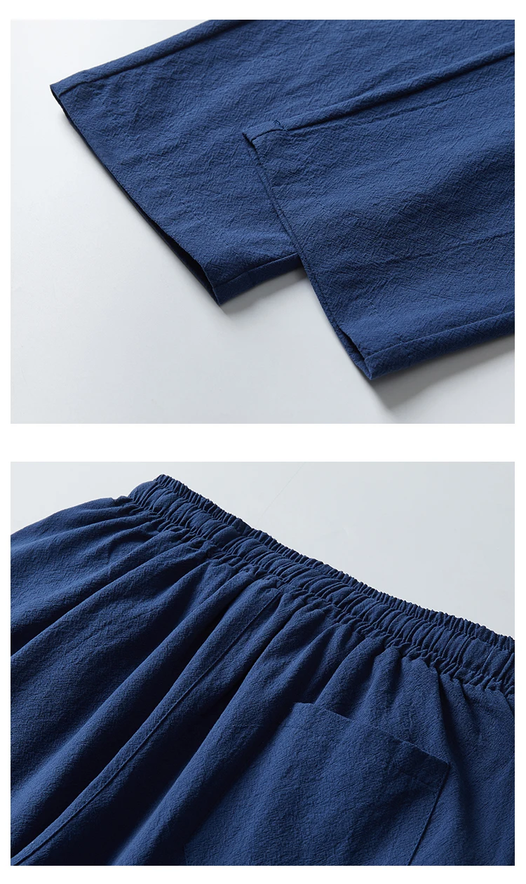 Linen Zen Tea Tee Tops Pants Kung Fu Uniform Oriental Fashion Casual Loose T-shirt Chinese Retro Style Tang Suit Men Trousers