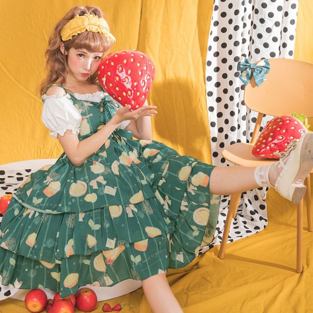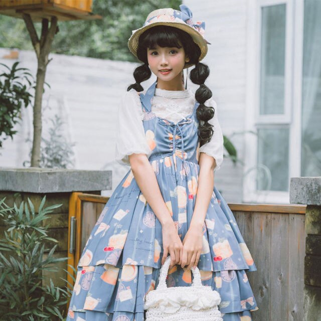 Lolita Victorian Vintage Women Sleeveless Honey Lemon Print Princess Party Dresses Girls Japanese Sweet Kawaii Jsk Lolita Dress