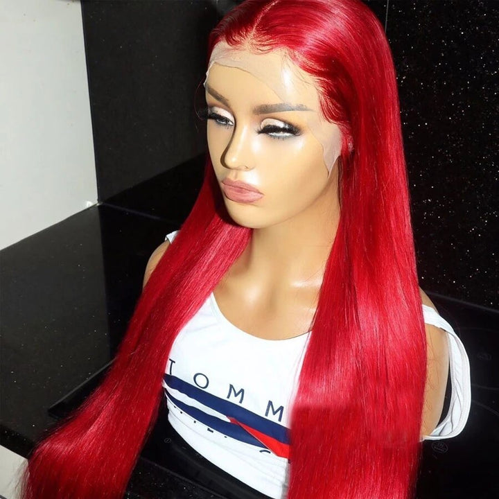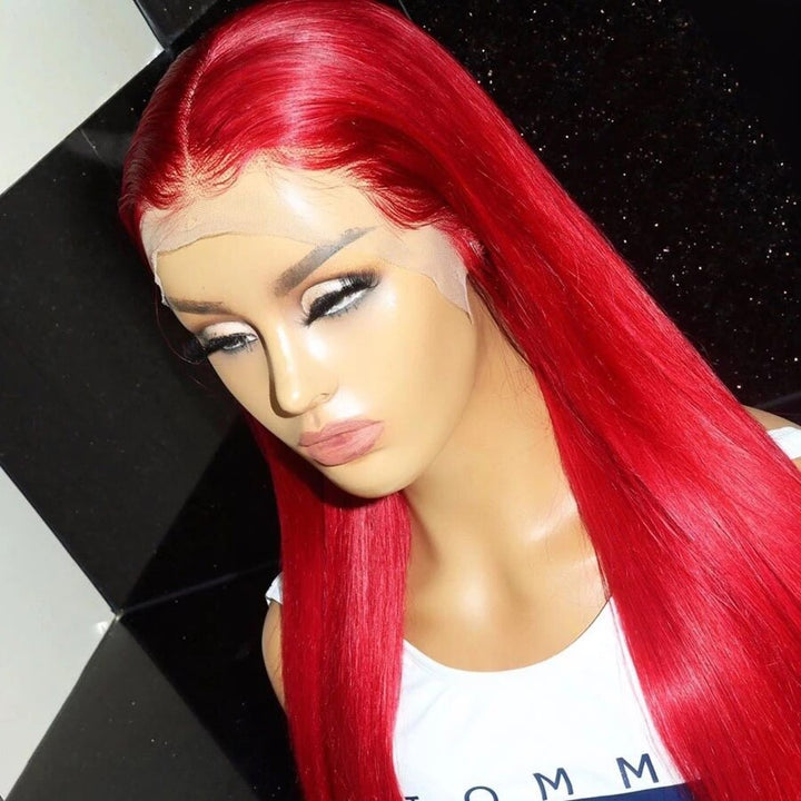 Long Red Silky Straight Hair Wig Heat Resistant Fiber Synthetic Lace Front Wig Cosplay& Drag Queen For Women Daily Use Full End