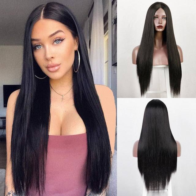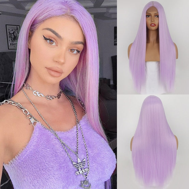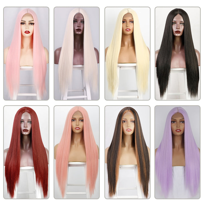 Long Straight Pink Synthetic Wigs Small Part Lace Wig for Women Blonde Black Red Middle Part Cosplay Hairs