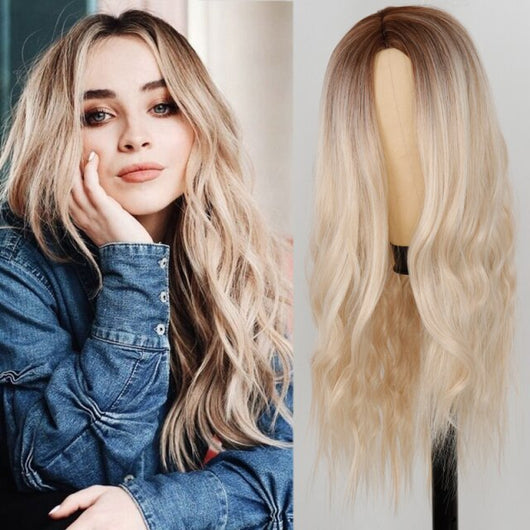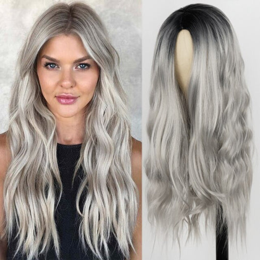 Long Wavy Womens Wig Natural Part Side Hair Ombre Heat Resistant Synthetic Wigs Platinum/Pink/Black Wigs for Women Coser