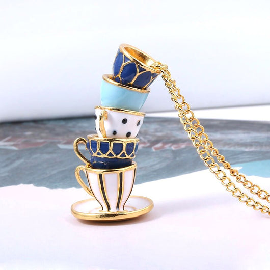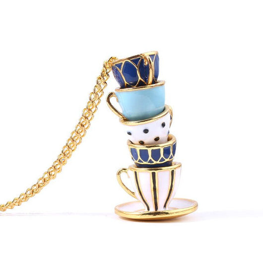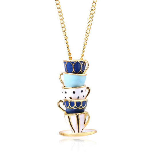 Loriri s Tea Party Necklace Cute Retro Palace Enamel Glaze Teacup Coffee Cup Necklace Metal Pendant Sweater Chain Jewelry