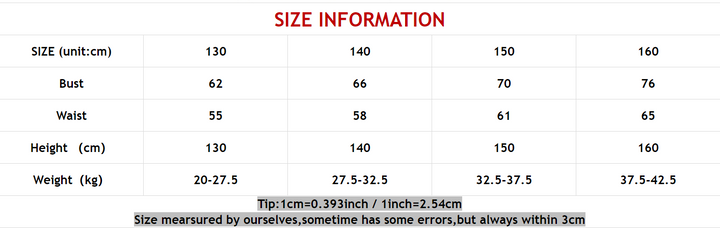 As all of our costume is hand-sewn, the finished costume may vary by approximately one (1-2) inch in either direction of the specified measurements.
