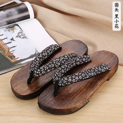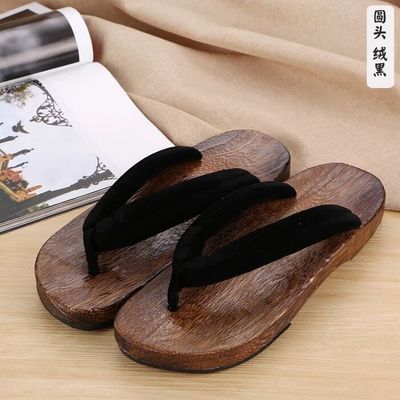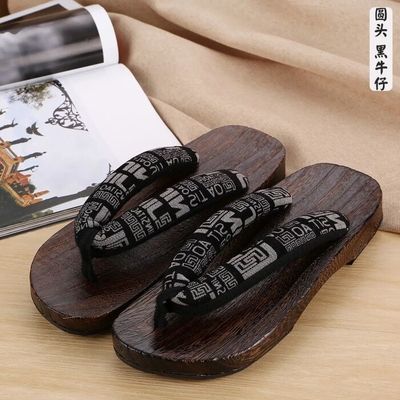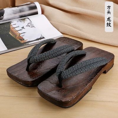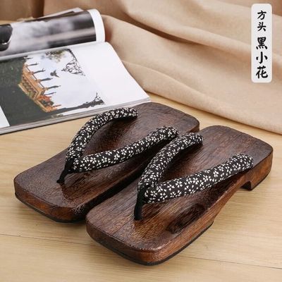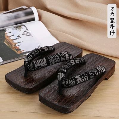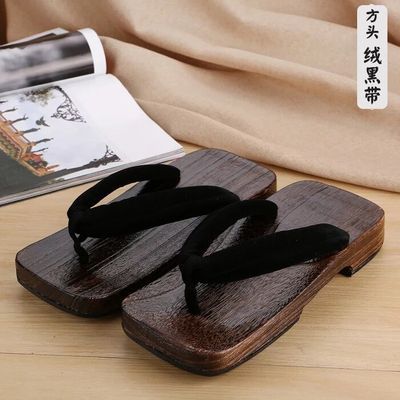 Man's Cosplay Shoes Mid Heel Carboned Wood Sandal Traditional Japan Geta Flip Flops/Slippers