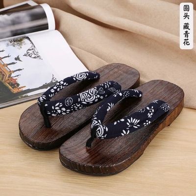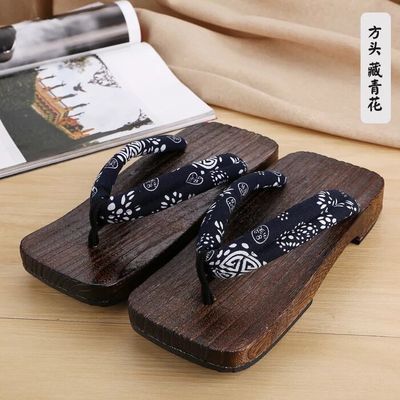 Man's Cosplay Shoes Mid Heel Carboned Wood Sandal Traditional Japan Geta Beautiful Floral Prints Flip Flops/Slippers