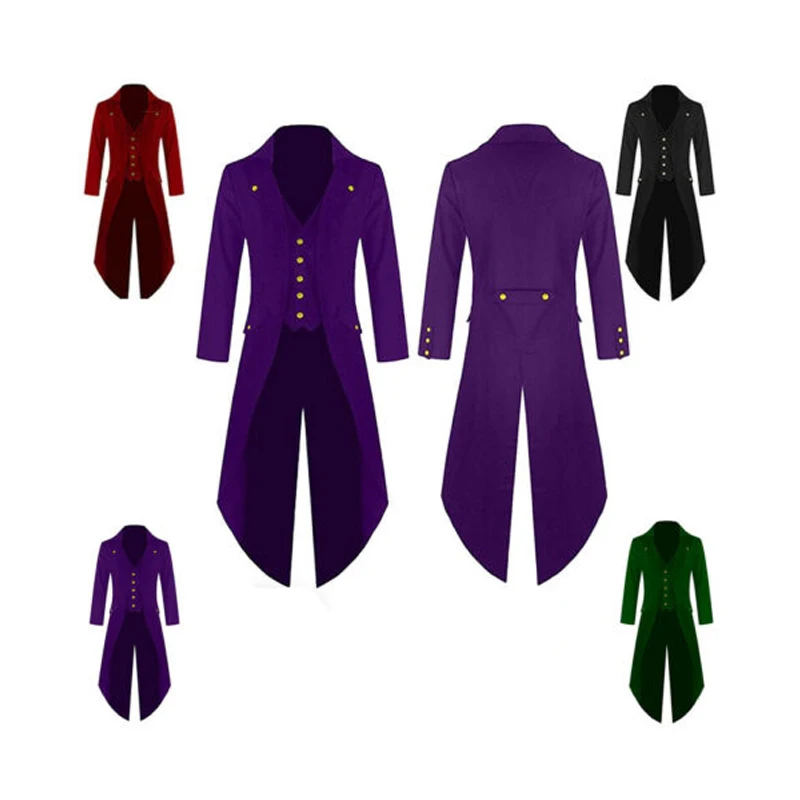 Medieval Mens Steampunk Halloween Costume Plus Size 5XL Vintage Tailcoat Jacket Gothic Magician Ringmaster Coat With Magic Hat