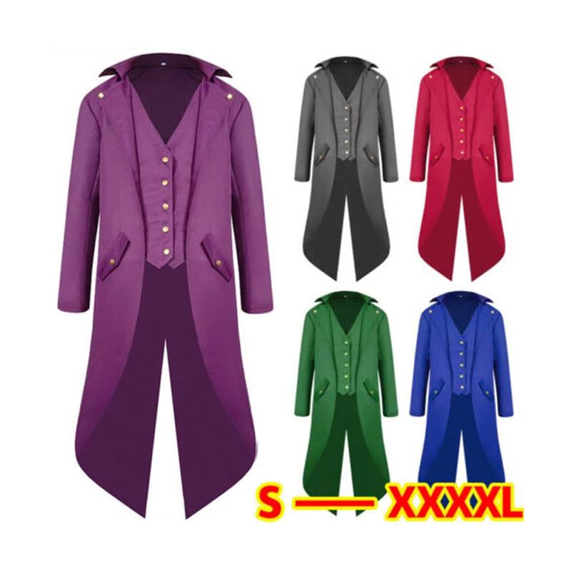 Medieval Mens Steampunk Halloween Cosplay Costume Plus Size 5XL Vintage Tailcoat Jacket Gothic Ringmaster Coat With Hat