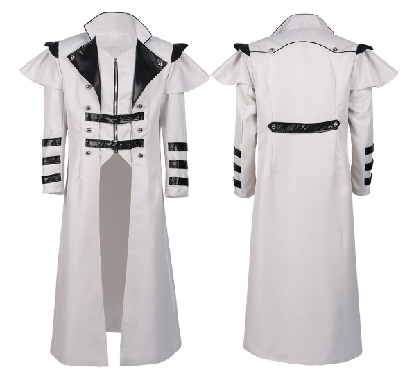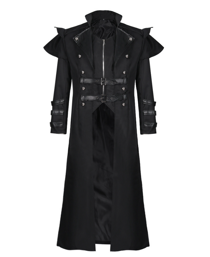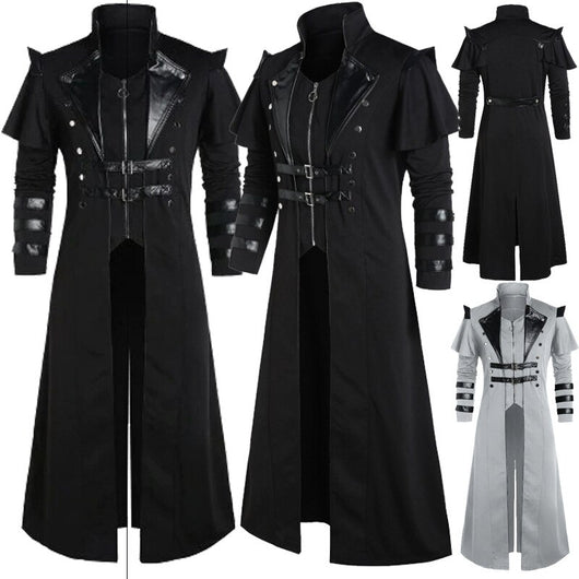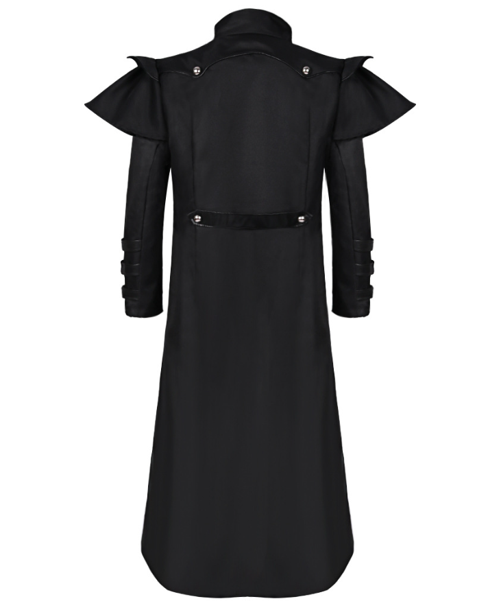 Medieval Steampunk AssassinElves Pirate Costume For Men Black Vintage Long Split Jacket Gothic Court Party Armor Men Coats