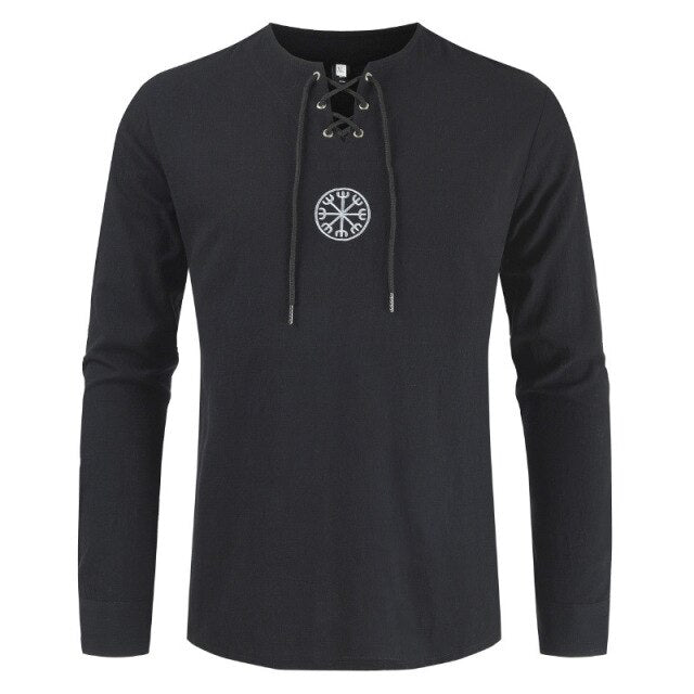 Men Long Sleeve Bandage T Shirt Knight Retro Tee Tops Medieval Peasant Vintage Clothing Camisa Casual Blouses Cosplay Costumes