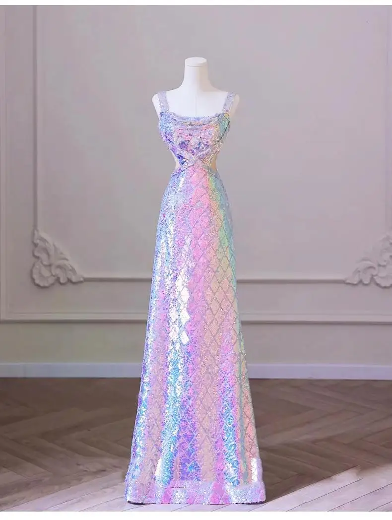 Mermaid Sequined Elegant Wedding Party Dresses Square Collar Sling Slim Prom Vestidos Luxury Shinny Temperament Evening Dress