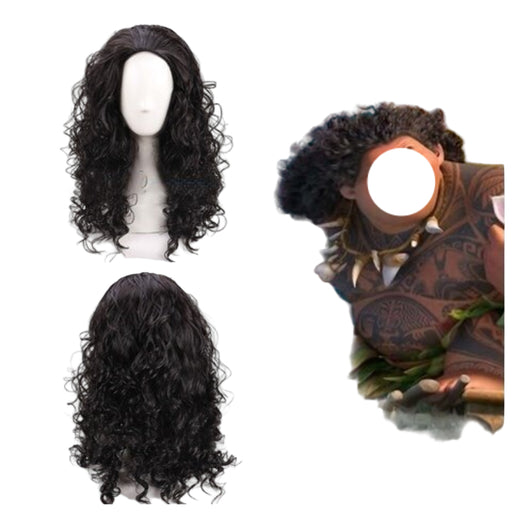 Synthetic black curly wig with a wig cap, inspired by the character Maui from the movie Moana.