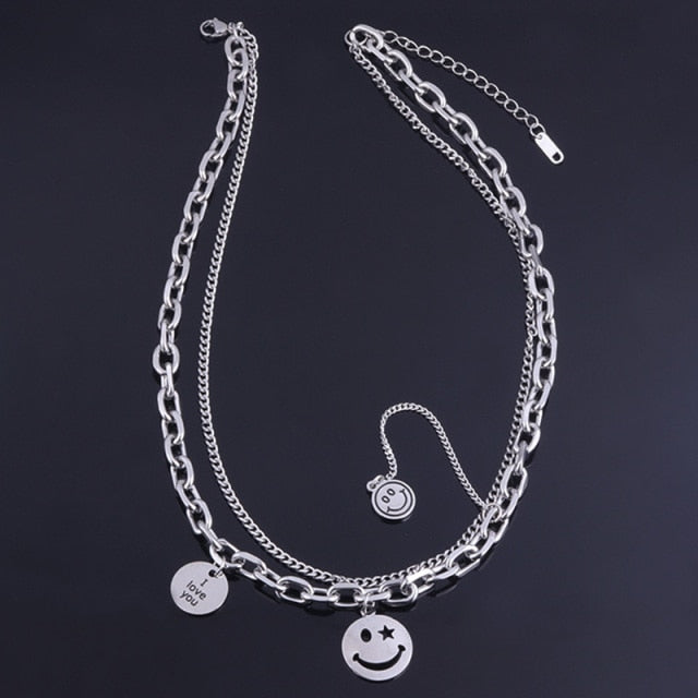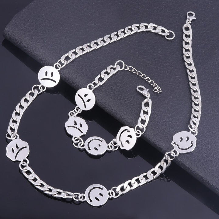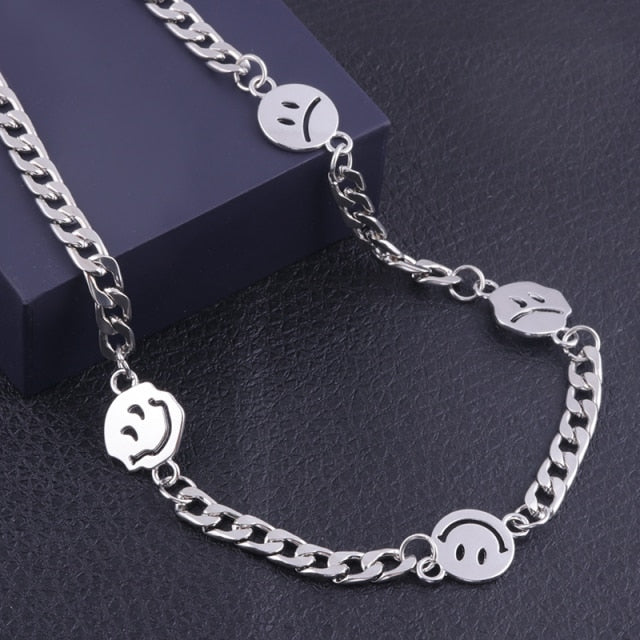 Multiple Smiley Face Crying Face Necklace Hip Hop Fashion Men And Women Personality Pendant Alloy Jewelry Accessories